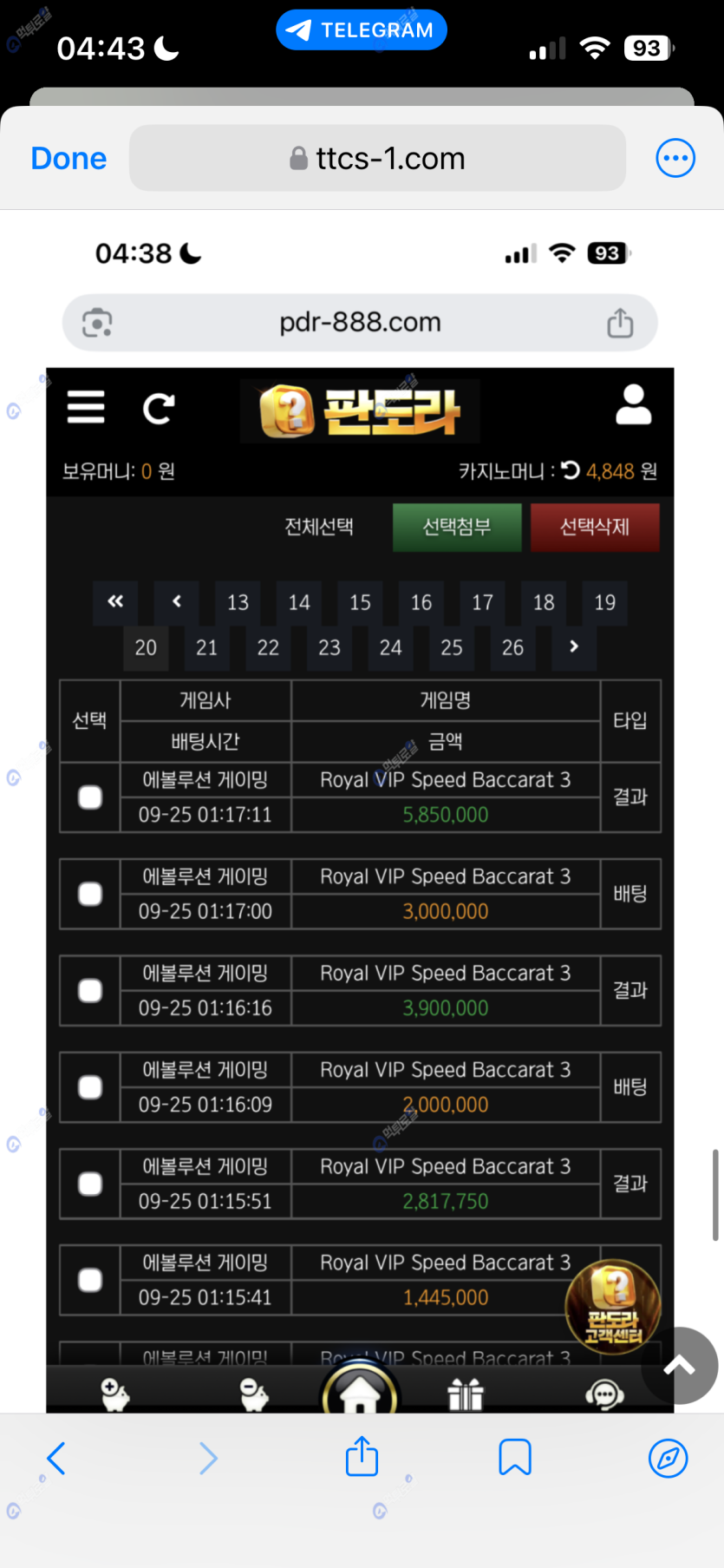 판도라 최고!! 사진 2장정도 투척해봅니다 (베팅내역 / 환전내역) 가즈앗!!!