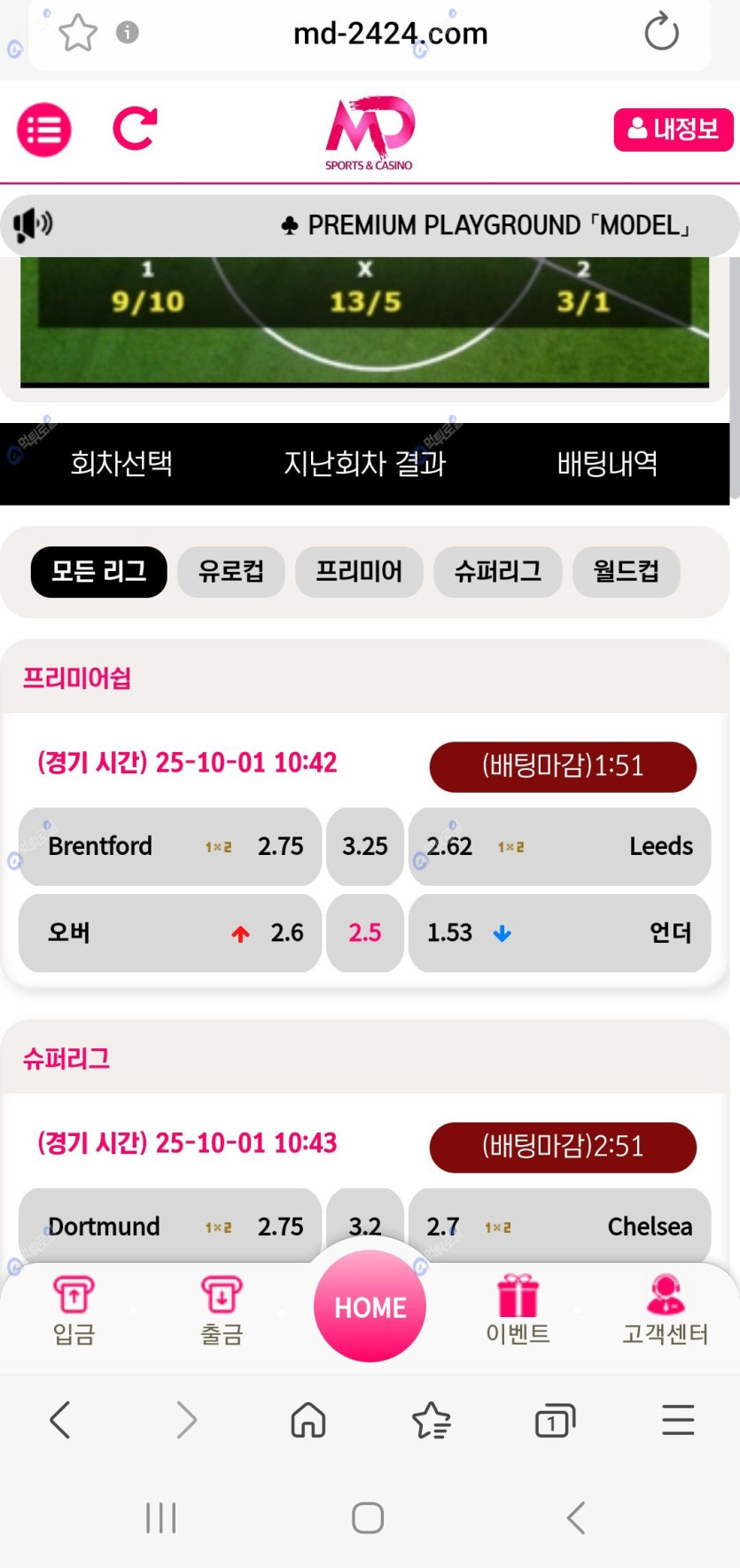 10월 첫째주 배팅했네요~ 점수가 야구가 축구했고 축구가 야구했네요ㅎㅎ재밌게 즐겼네요^^ 모델 충환전이 빠르고 빠른 가상계좌를 자주 바뀌지않고 빠르고 친절히 고객센터에서 잘 도와주십니다~ 스포츠 실시간(인플레이) 슬롯 가상게임 다있으니 한번 이용해 보세요~