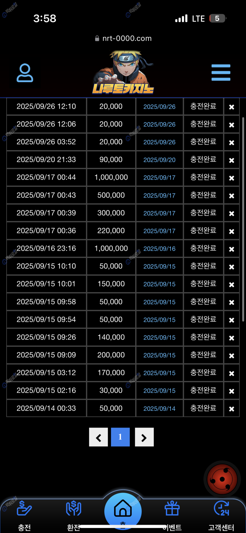 나루토 강력하게 추천해요! 진짜 충,환전 엄청빠르구요