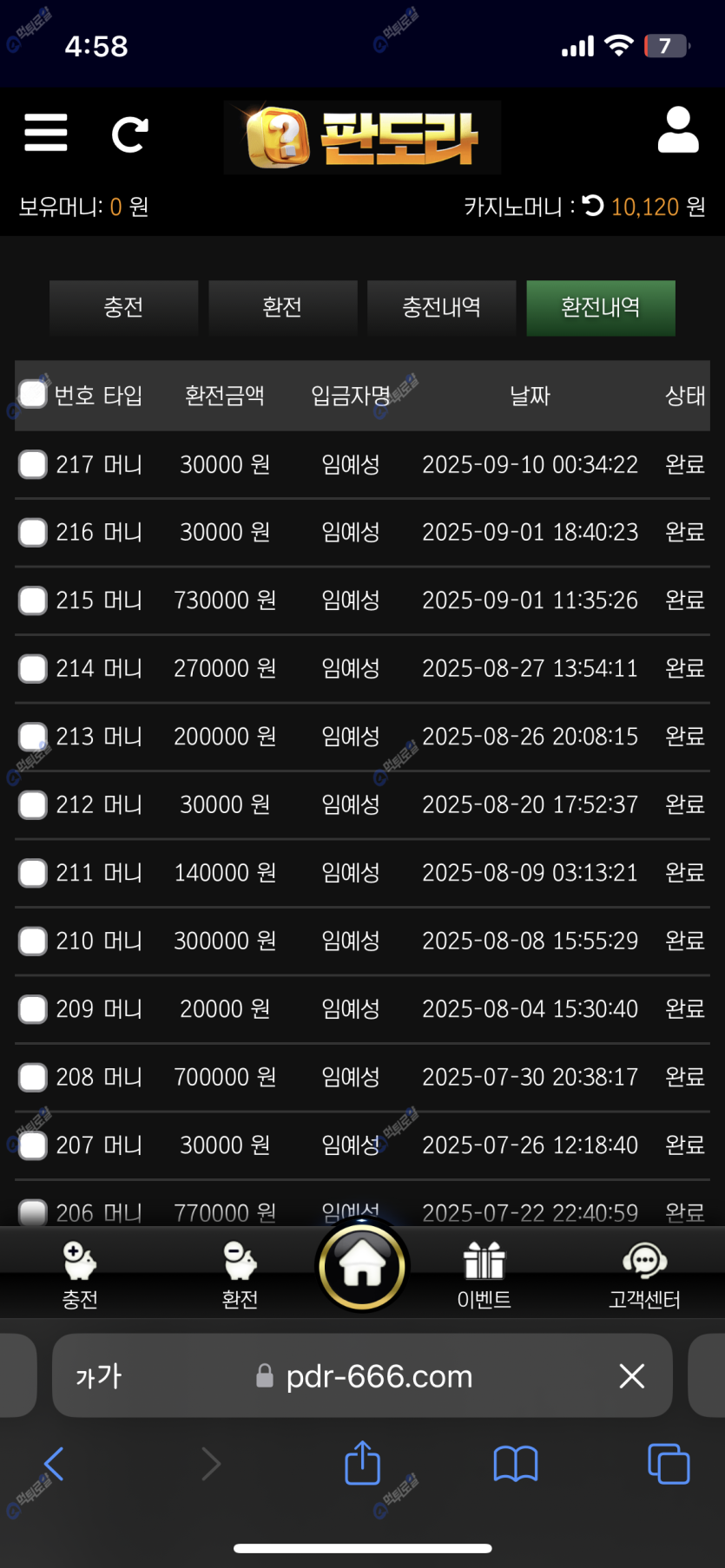 충환전 빠르고 이벤트,혜택 많아서 좋아요 운영진분들도 친절하시고요