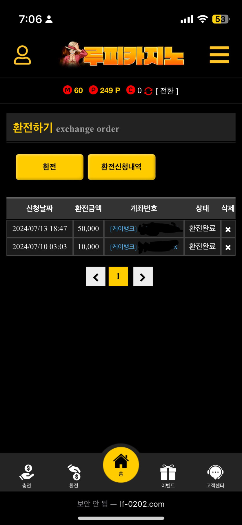 1만원만 환전 쳤고.. 오늘 1출 5마감 쳤습니다