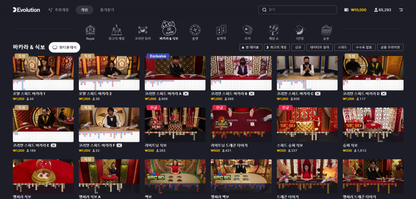 사진에 보이시는 4번 째 탭! "바카라 & 식보" 클릭 !