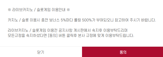 충전 보너스마다 5% 롤링 500%가 부여된다고 하네요?!