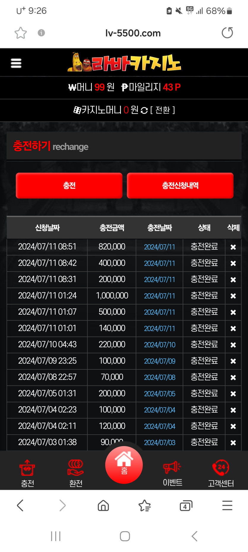 268까진 올라왔는데 다시 금액조절해서 조금씩 충전해서 진행시켜야겟네요 배팅~!~ 다시 또 행복힐링 회로가 유지되길 바라면서 오전 당일 라바후기입니다~!~ ^0^!