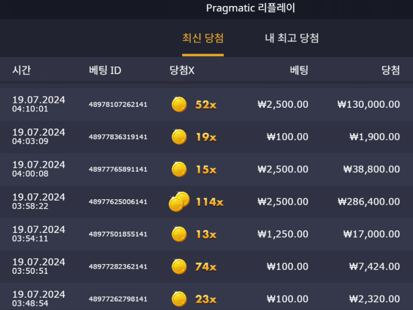 2500원짜리만 5번 걸렸는데 그중 2번이 배팅 내역에도 없는 10배 아래 ㅠㅠㅠ