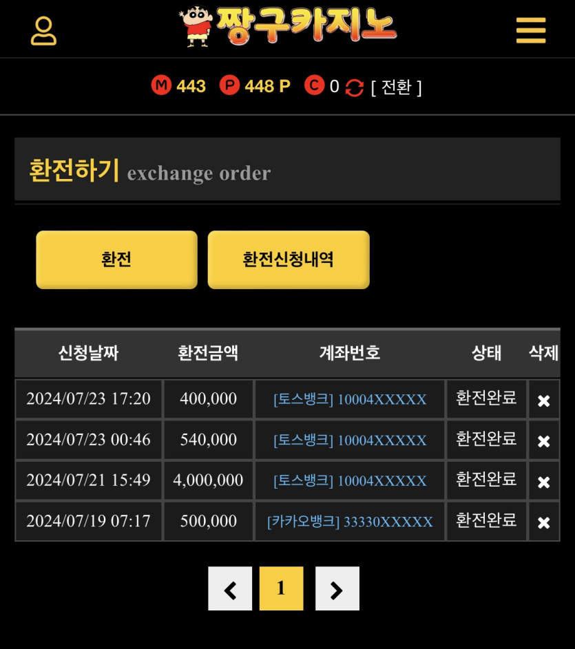 환전내역 샷 올립니다.