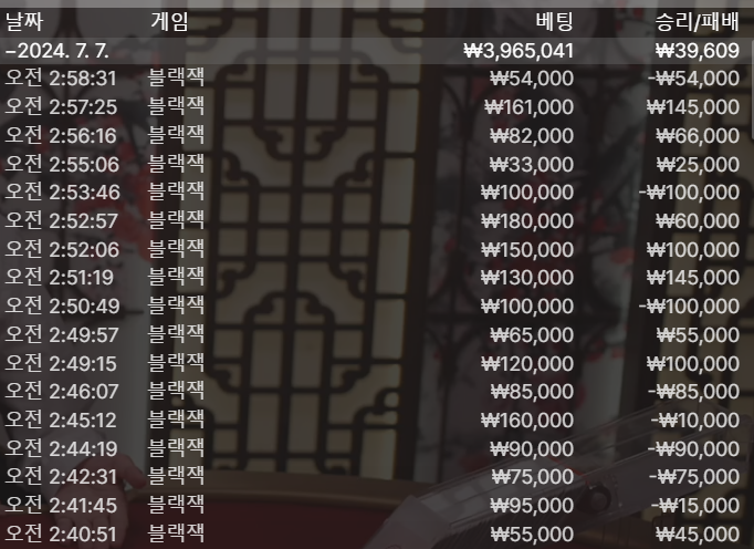 블랙잭가서 3구멍 쏴서 본전찾고