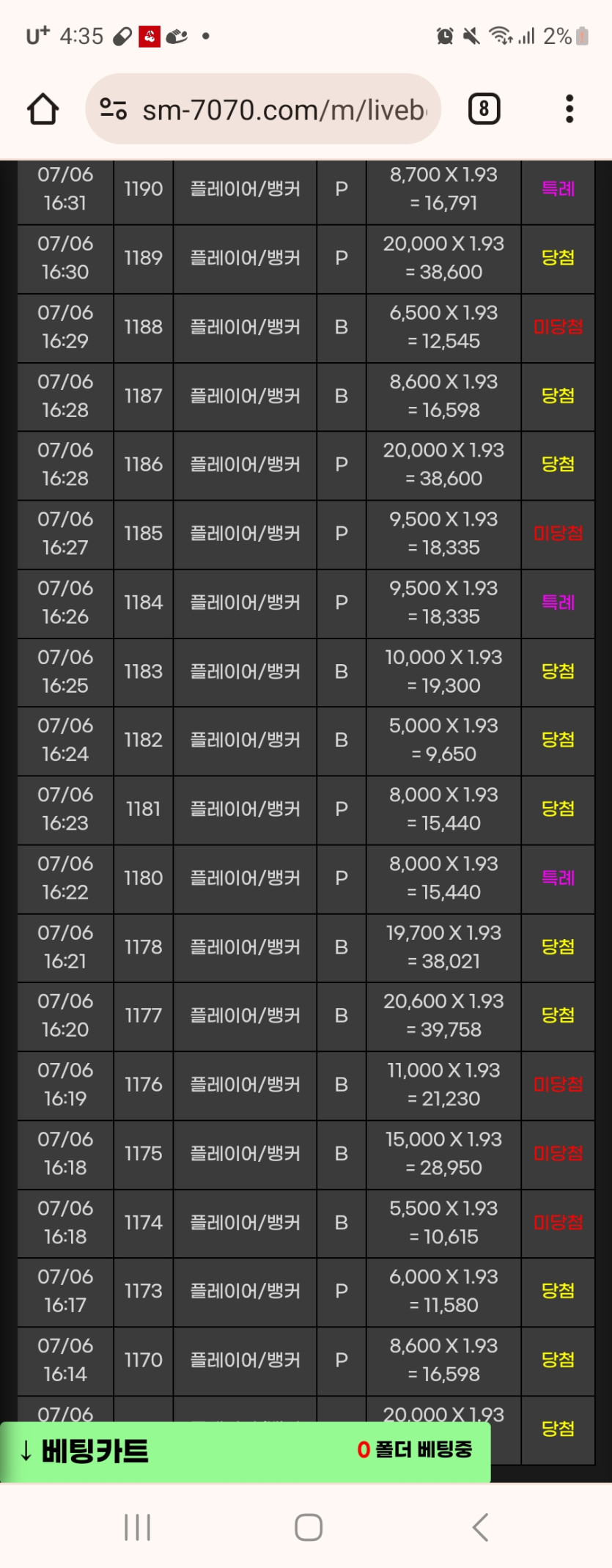 일단 스포츠 롤링 경우 100%이며 3폴 이상 타 업체와 거의 비슷하다고 보면 됩니다.