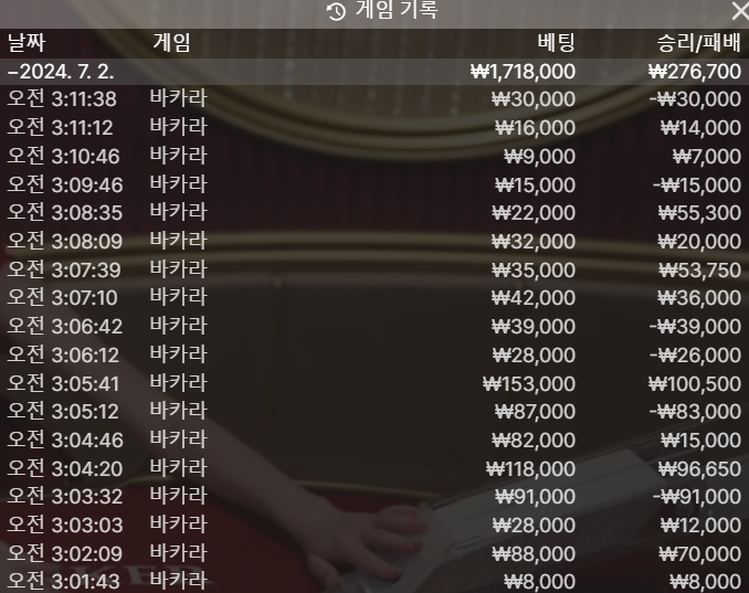 50만원 충전해서 바카라 했네요..