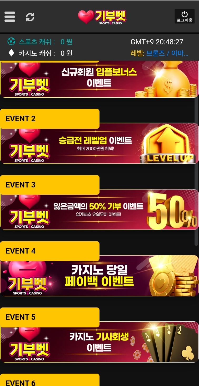 기부벳 전체적으로 정말 깔끔하고 고객센터도 친절합니다. 보시면 알겠지만 이벤트들 다른곳들보다 기준도 낮아 참여하기 쉽고 훨씬 조건이 좋습니다.