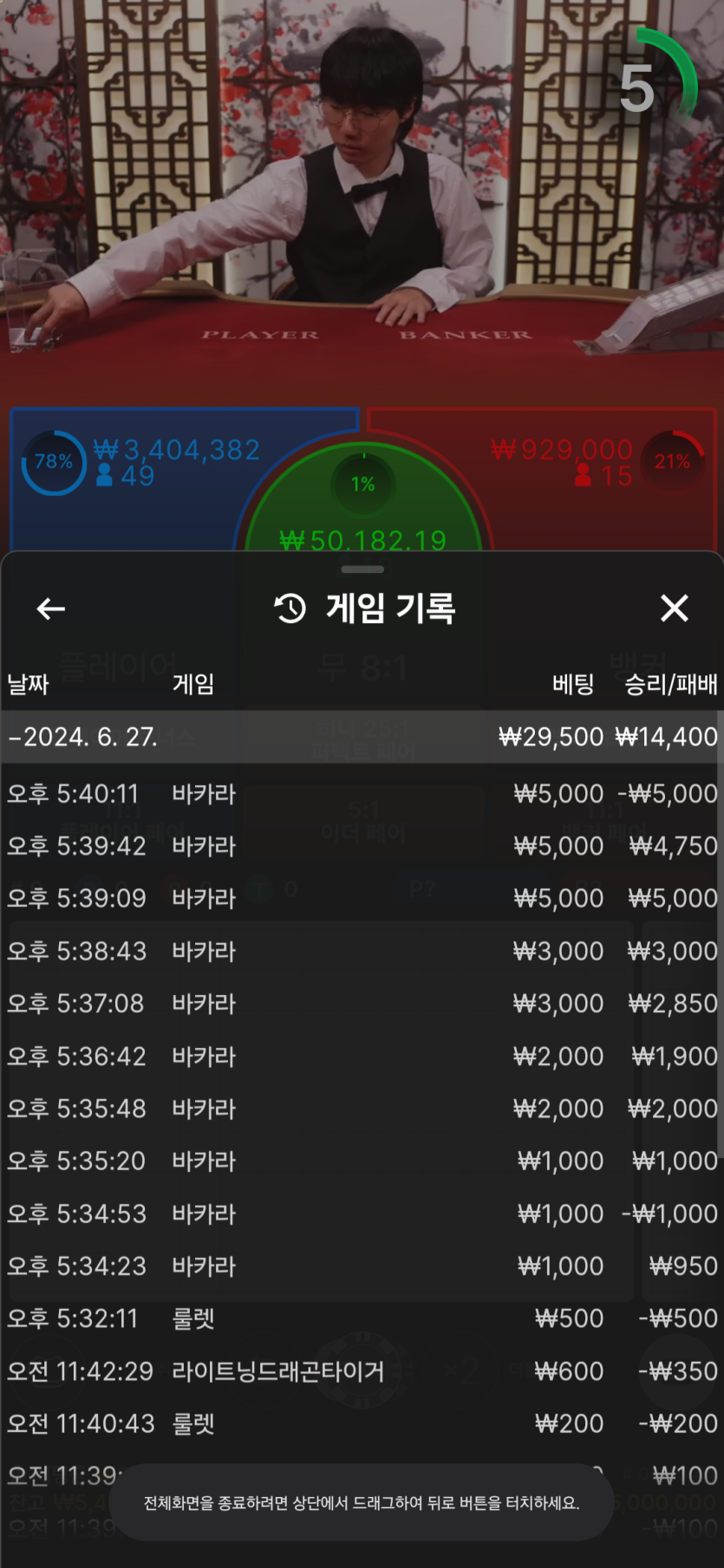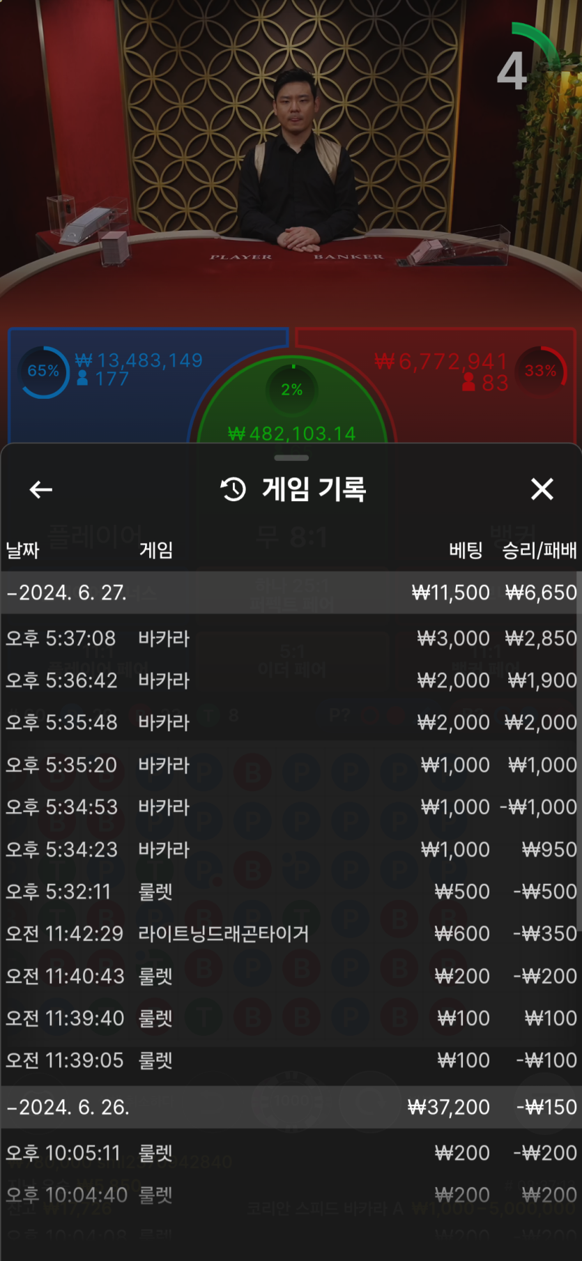 중간에 딜러분이 탕후루 쳐주셨는데 아쉽게도 영상찍을려다 놓쳤습니다 ㅋㅋㅋ