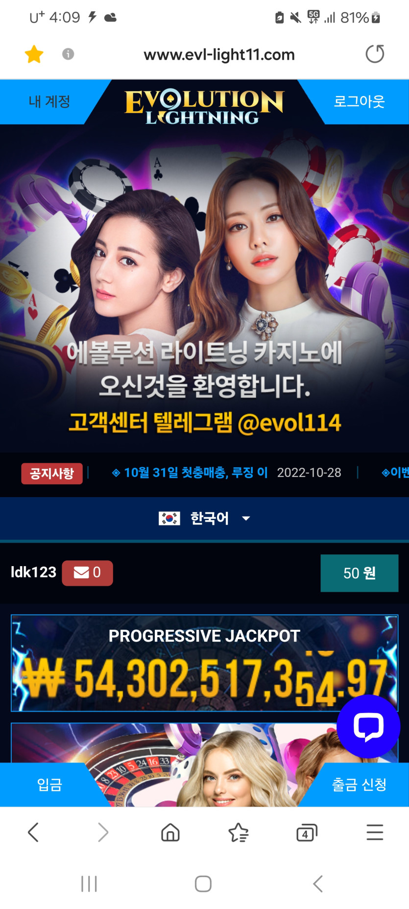 신규입점한 에볼라이트닝 카지노도 한번씩들