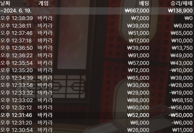 오늘 점심 시간은 바카라가 그림이 좋네요