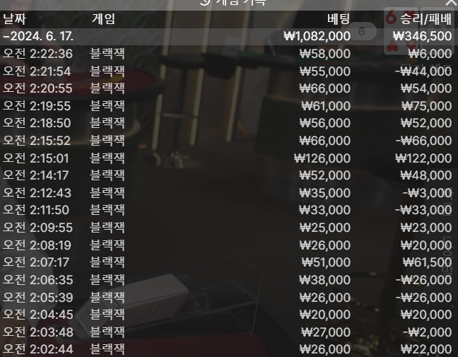 오늘 새벽은 블랙잭이 좋을것 같아서 20만 충전했네요
