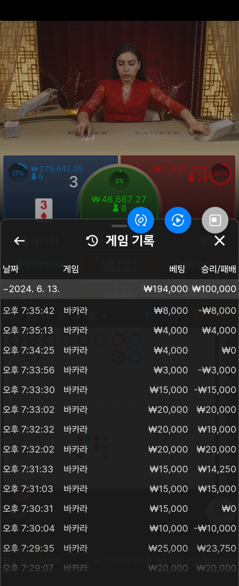 바카라를 수년만에 해서 엎치 같은건 안하고 했는데 어느정도 깔끔히 딱3배치기했네요.