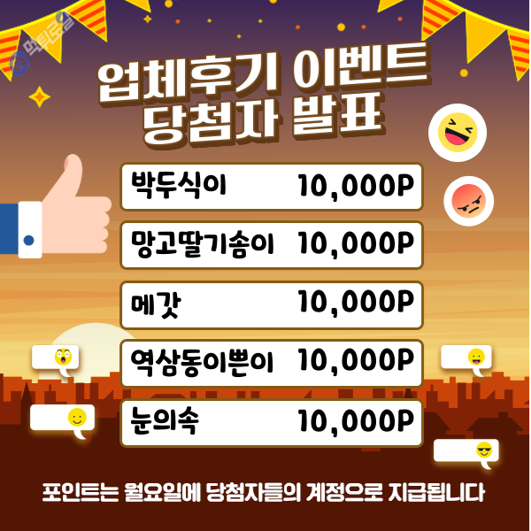 ★ 8월25일 ~ 8월31일 업체후기 당첨자 발표 ★