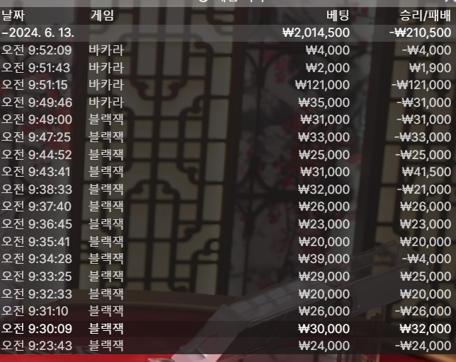 바카라로 이동해서 한방에 12만원 올링벳 했는데 (밑줄 뱅커4개에서)