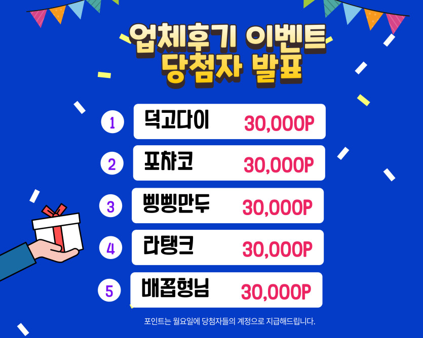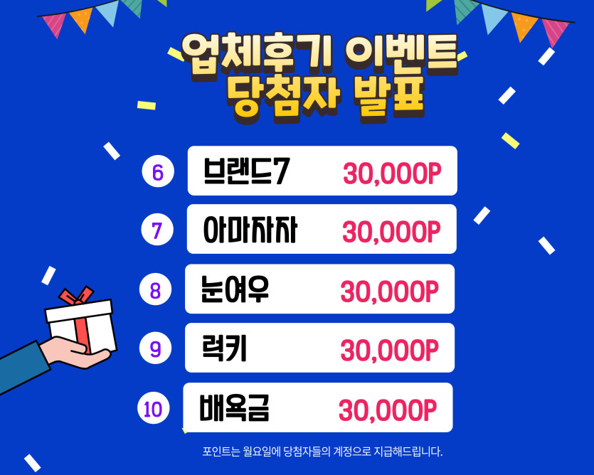 ★ 6월3~9일 업체후기 당첨자 발표 ★