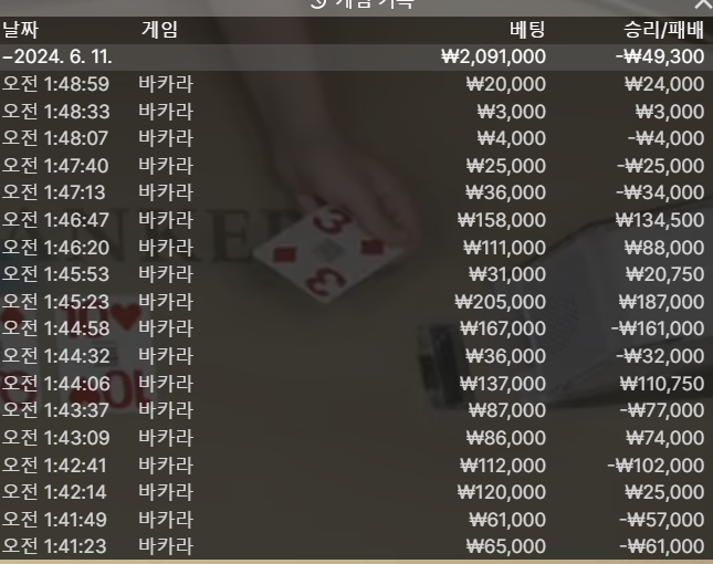 바카라 했는데 초반에 그림이 계속 꺽여져서 계속 틀리네요.