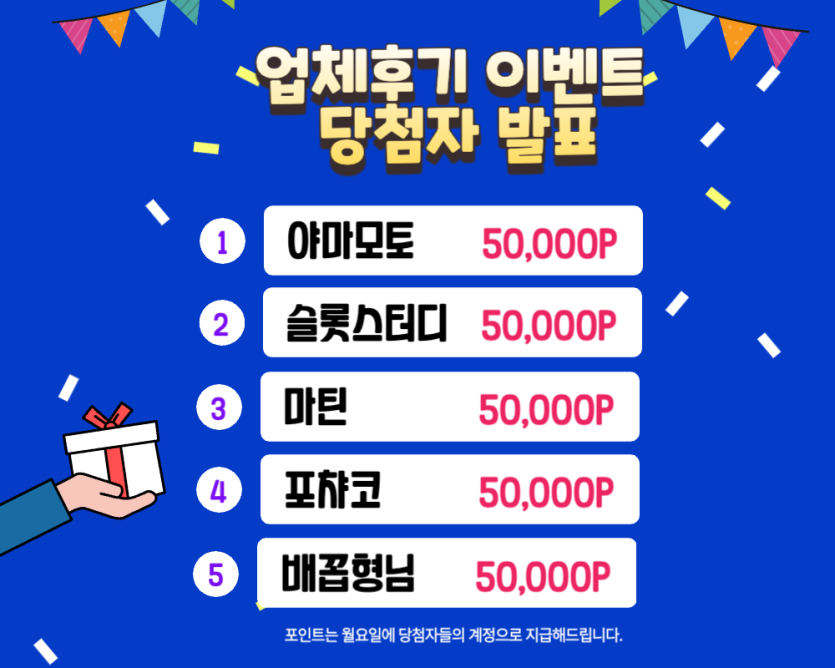 ★ 5월 3째주(5.20~26일) 업체후기 인기글 당첨자 발표 ★