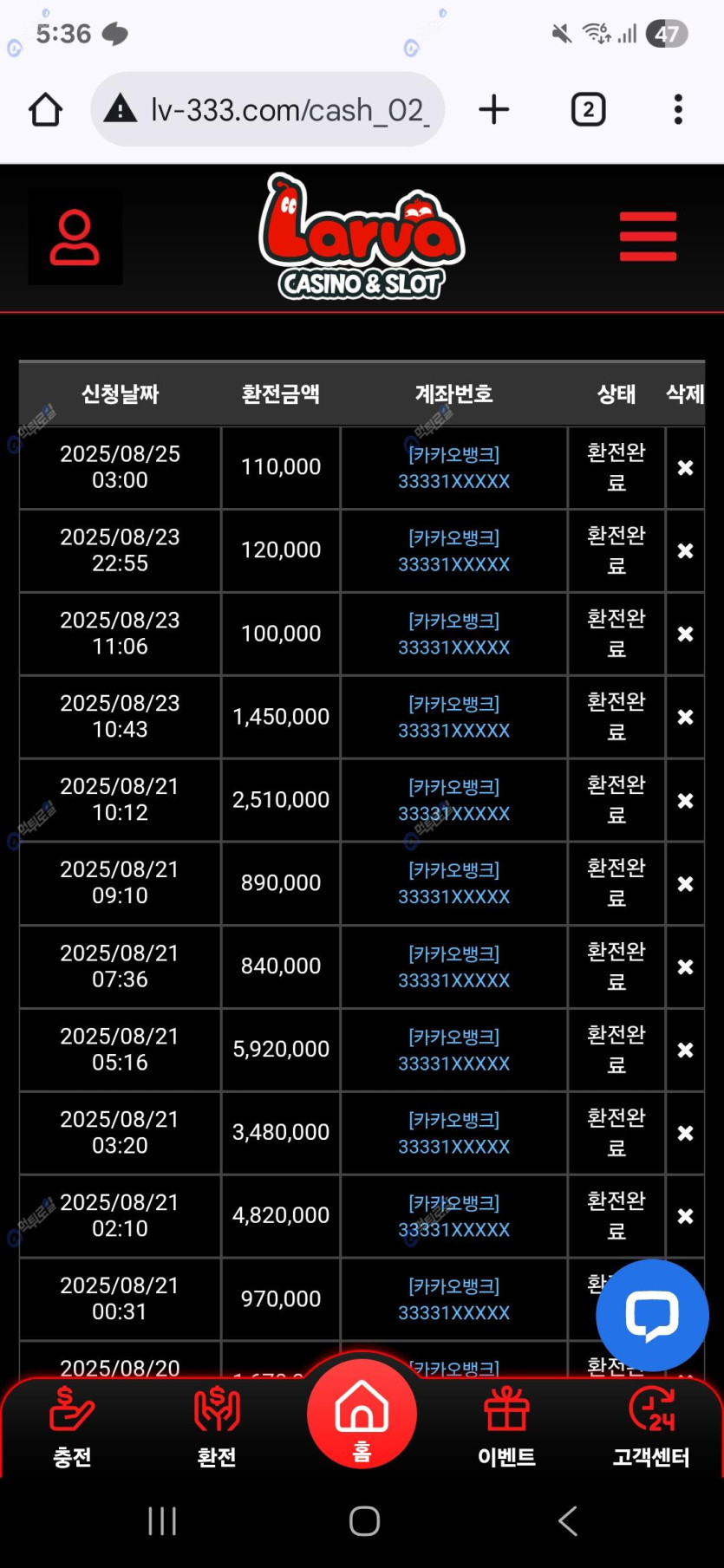 그만큼 고액환전도 잘 나오고 고액배터들이 매우 많은것으로 보입니다