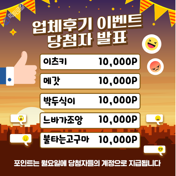 ✅ ★ 8월18일 ~ 8월24일 업체후기 당첨자 발표 ★