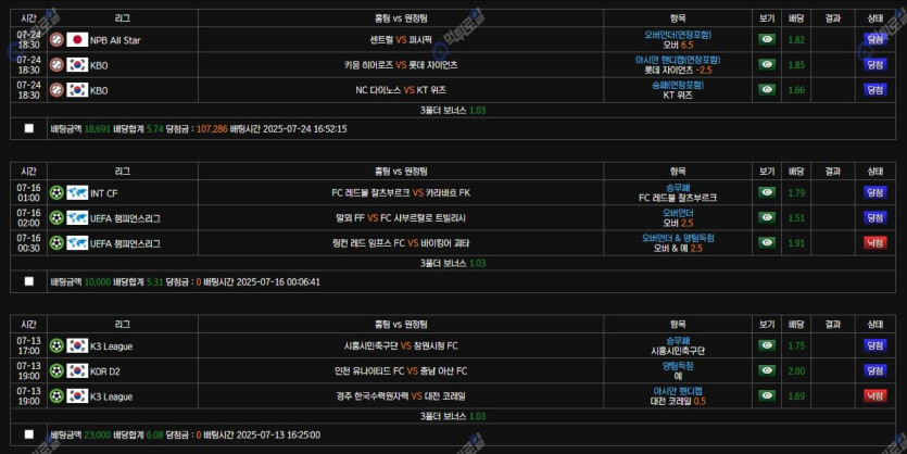 저는 주로 스포츠 축구로 좋아해서 단폴은 배당이 낮아서 주로 3폴더부터 조합해서 갑니다