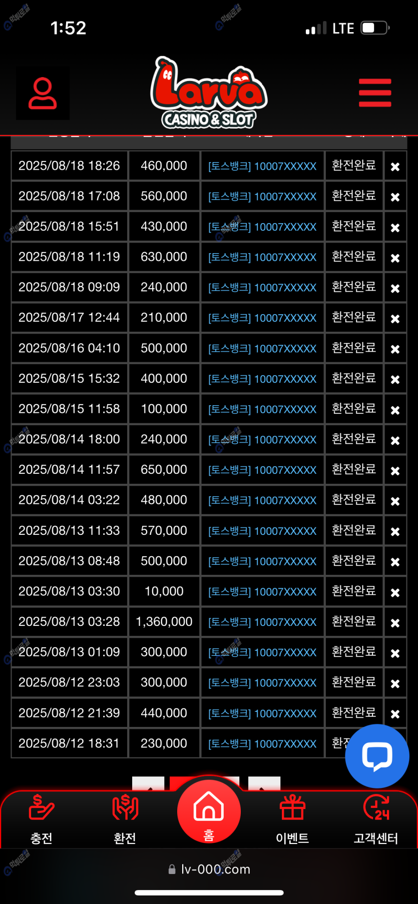사실 가입한지는 일년정도 되었지만 충환전 문제없이 잘 돌아가구