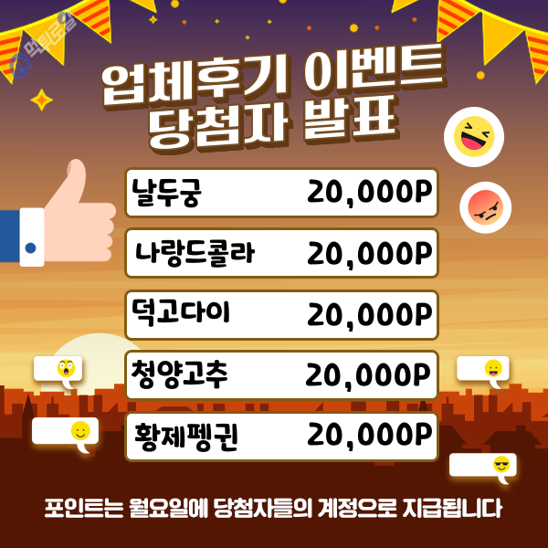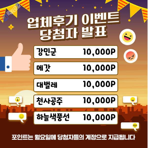 업체후기 이벤트 당첨자 발표입니다.