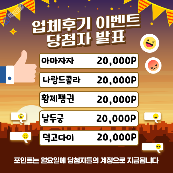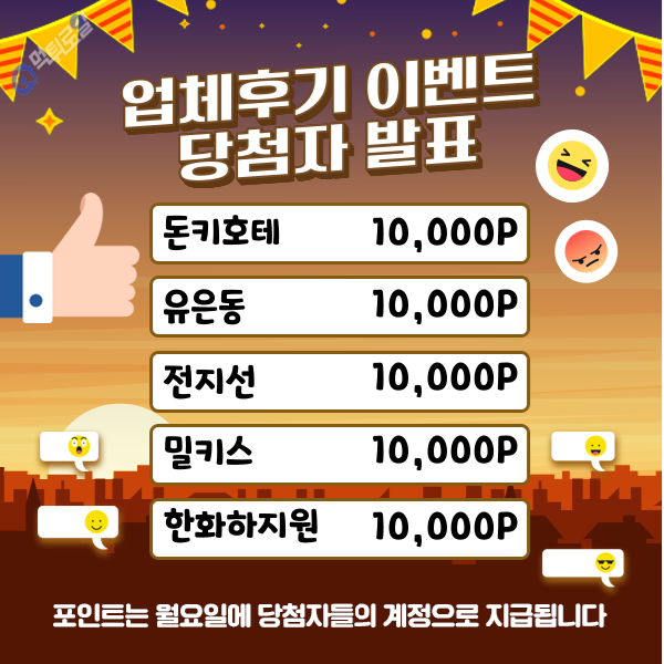★ 8월4일 ~ 8월10일 업체후기 당첨자 발표 ★