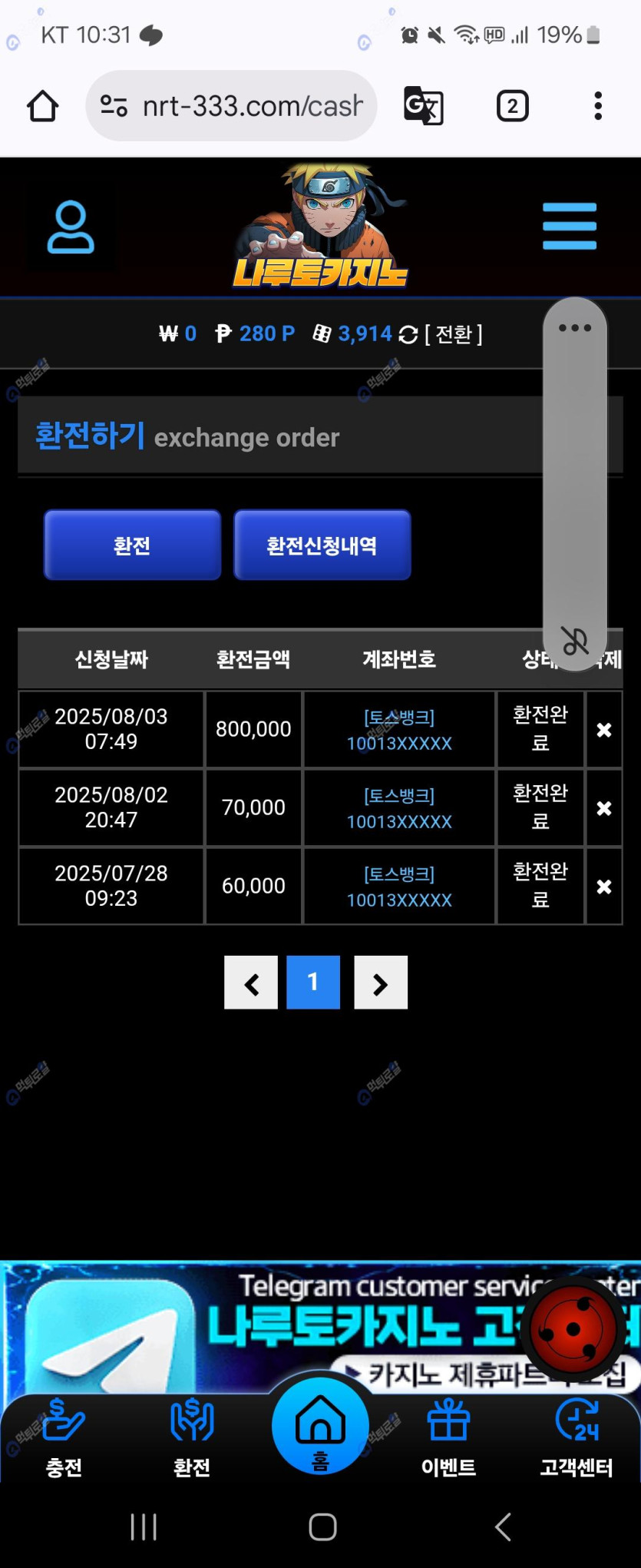 언제나 빠르고 친절하게 응대 해주시는 윤영진 분들이 많이 챙겨주셔서 매번 감사하고 꾸준히 1년정도 이용중인데 불편함 하나 없이 안전하게 오늘도 수익 봤네요 사대잘맞는 놀이터 나루토로 놀러들 오셔요