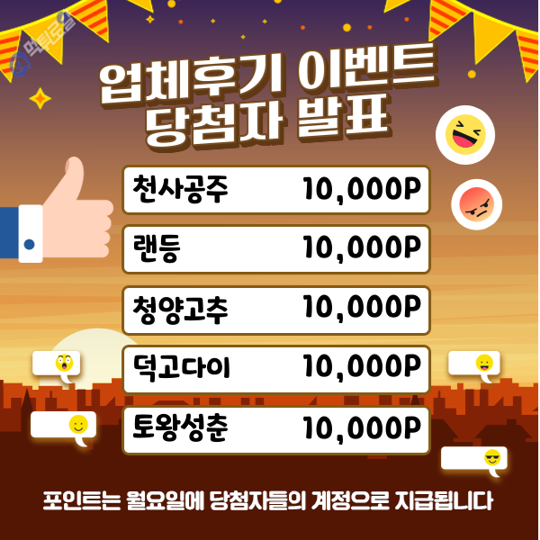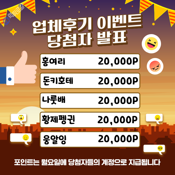 ★ 7월28일 ~ 8월3일 업체후기 당첨자 발표 ★