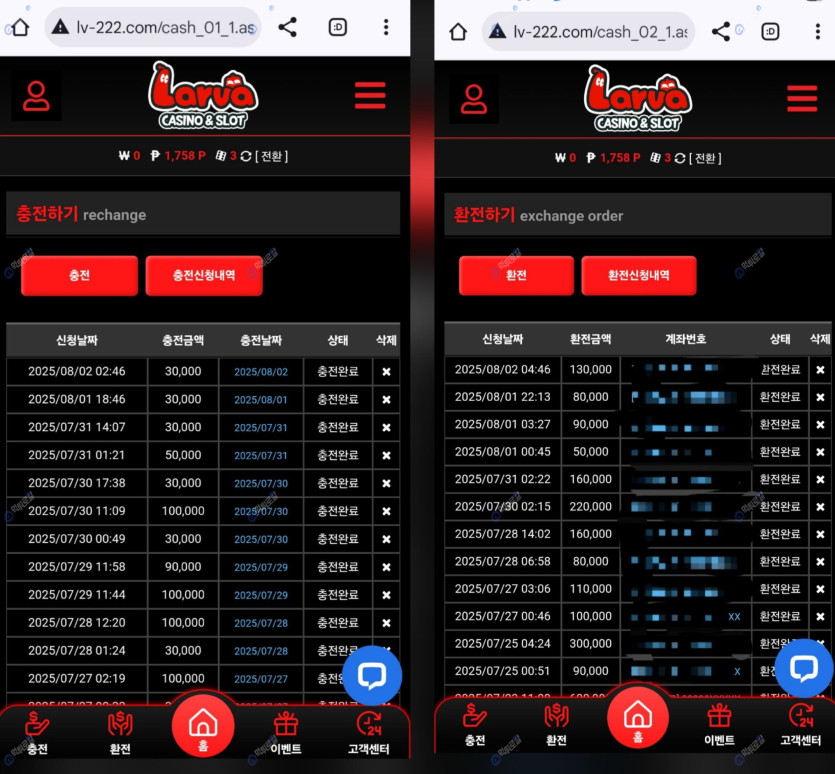 게임별 이벤트머니별 롤링 기준도 준수한곳!