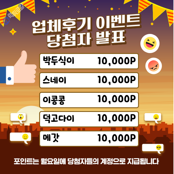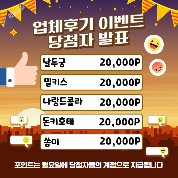 ★ 7월21일 ~ 7월27일 업체후기 당첨자 발표 ★
