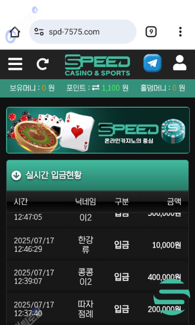 스피드 스피드하개 카카오페이 계좌발급으로 충전후이용해봄.비록 스포츠 1폴낙으로사망하셧지만ㅜㅜ.기타 게임들도 알차보이고 이벤트도 다양해서 자주이용할듯함.