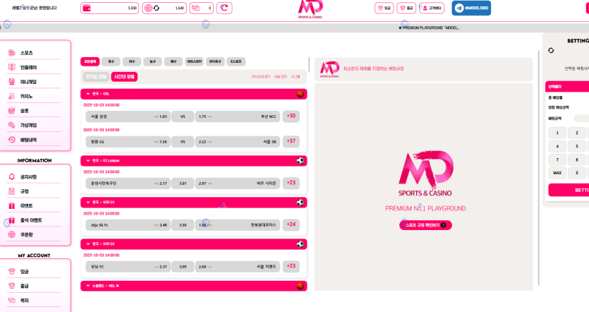 스포츠 배팅은 국내외 리그를 모두 커버하며, 카지노 섹션 역시 다양한 게임 라인업을 갖추고 있습니다.