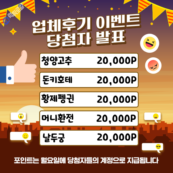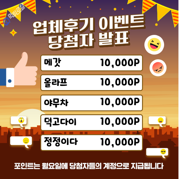 ★ 11월10일 ~ 11월16일 업체후기 당첨자 발표 ★