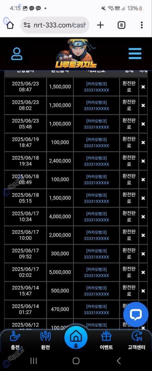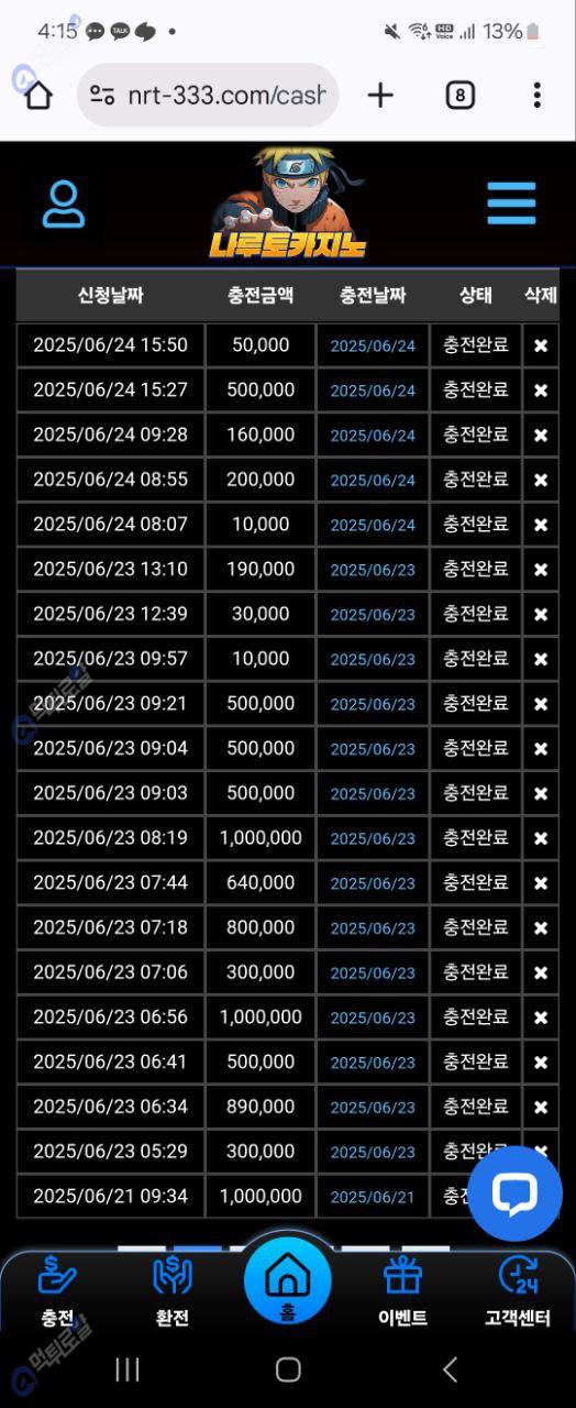 후기를 끝으로 충환내역 한번 남기고 가겠습니다 ! 참고로 저는 나루토 가입한지 한달도 안됐네요 ㅎ