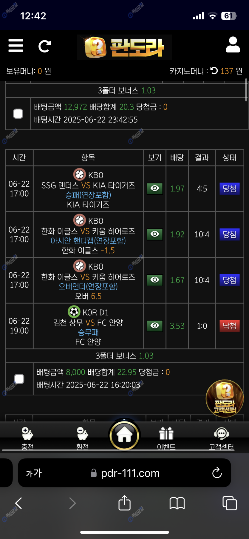 카지노랑 스포츠 둘다 이용하는 유저입니다 몇 년째 이용하다 후기 남깁니다 충환전 한번도 늦 은적없고 스피드하고 운영자분들 정말 친절하셔 서 오랜시간동안 문제없이 잘 이용했습니다 요 즘에는 게임이 잘되서 잘 먹고 잘 사용하고있습 니다 이벤트 정말 다양하고 페이백,돌발등 포인 트 많이 챙겨주니 한번쯤 이용해보시는 것도 좋 을 것 같습니다.