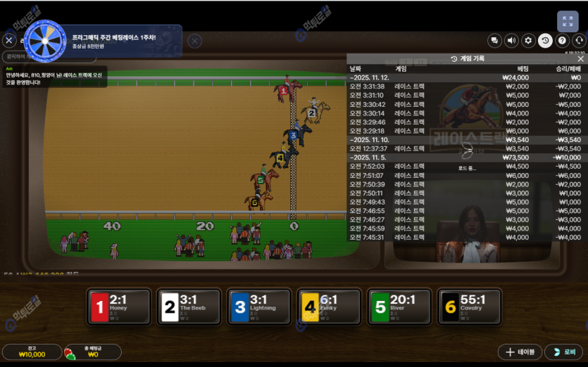 1만원으로 에볼루션 가상경마 들어가고 금조하며 배팅!