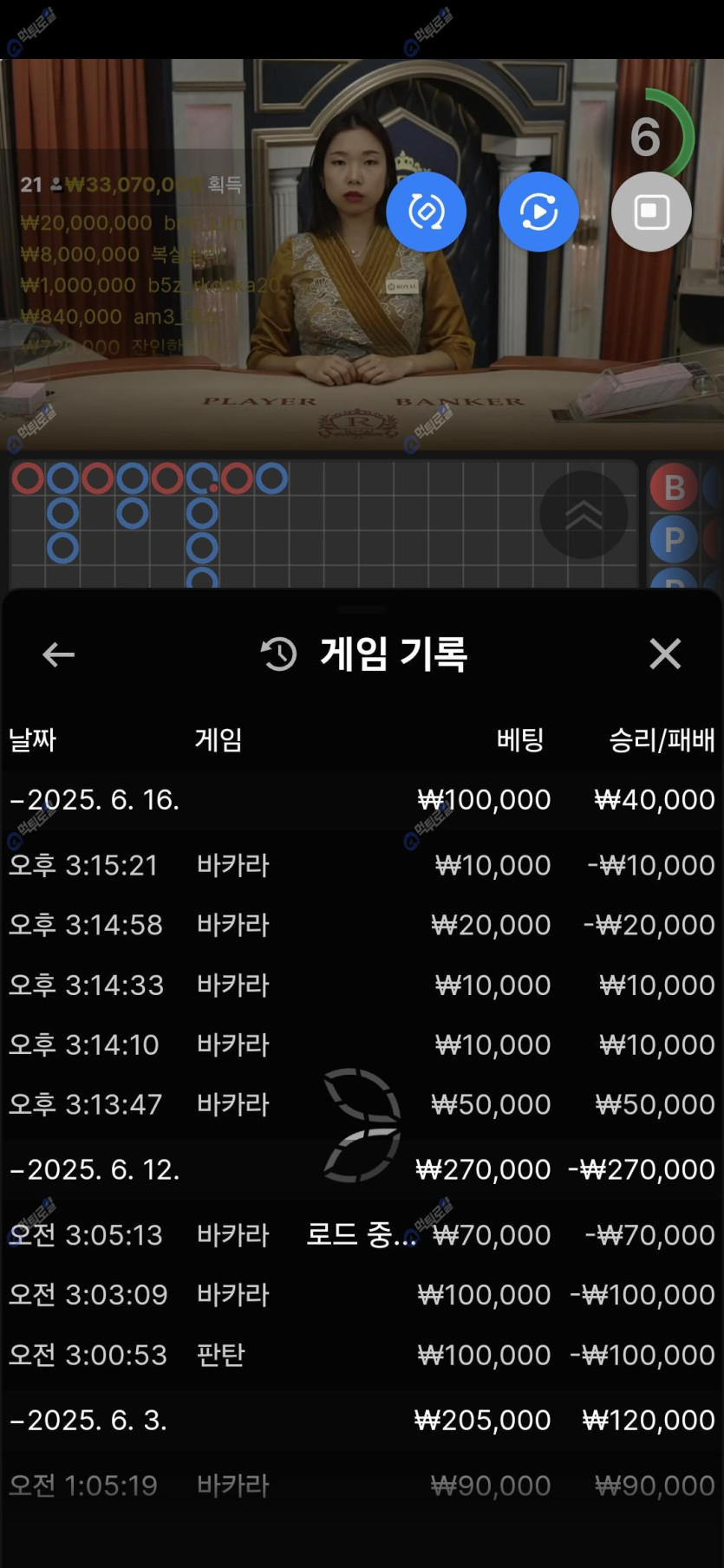그래도 오늘은 바카라로 조금 무마해서 다행이네요