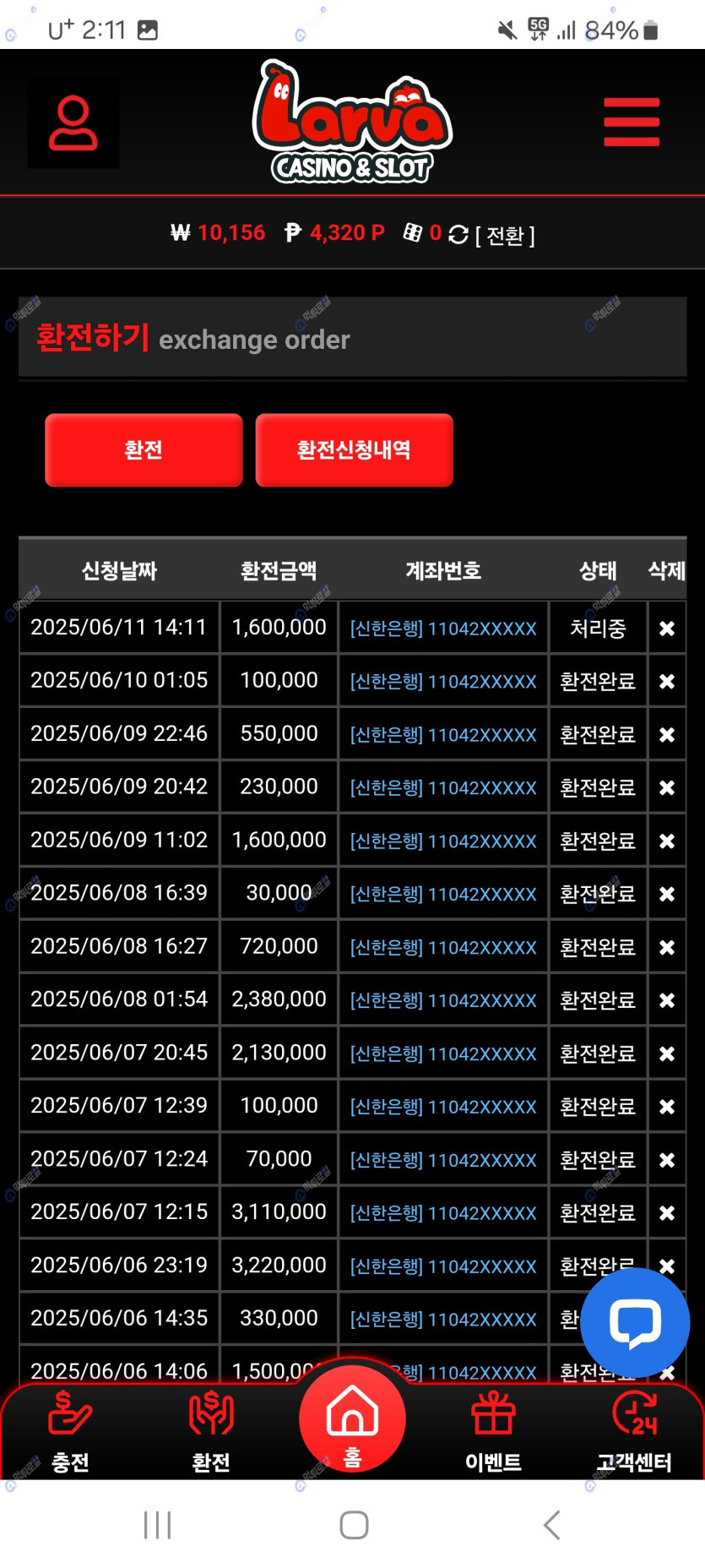 106충전 160환전