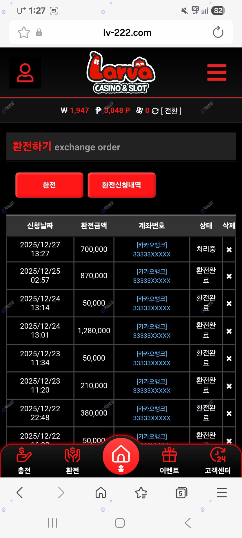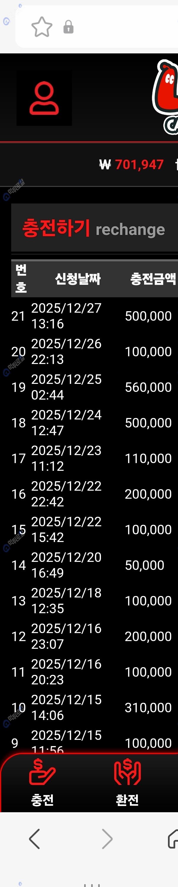 1차 50충전 70환전 롤링120.6만