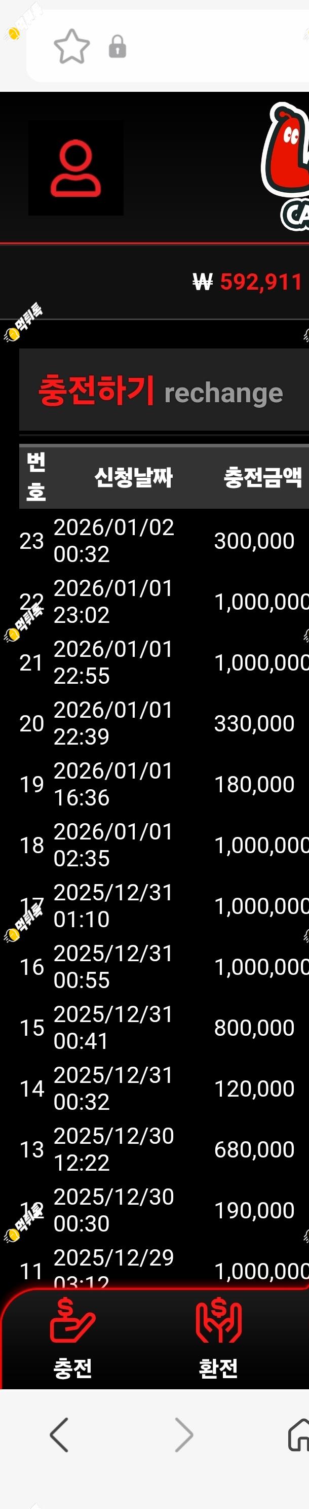 1차 30충전 59환전 롤링46.8만