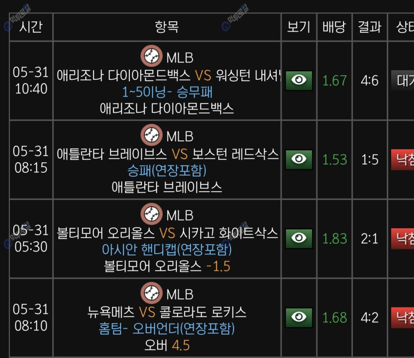 베팅 선택지가 제가 자주가는 5이닝 승패 있고 그래서 너무 좋네용