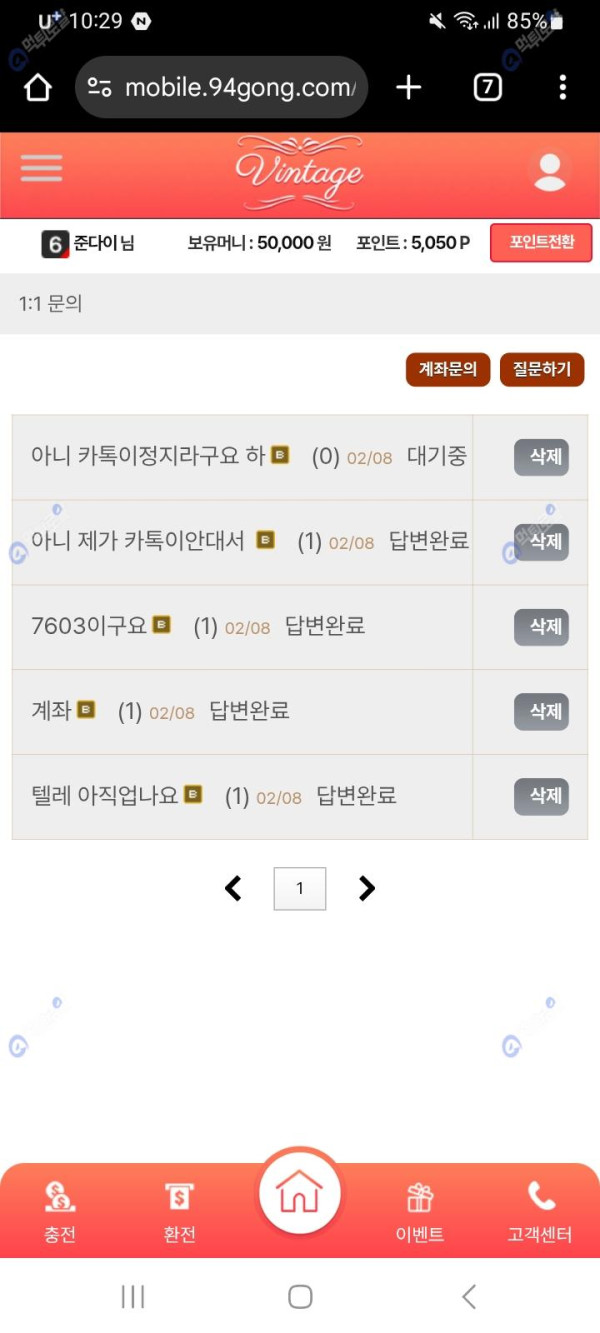 근데 환전처리는 4번팅구고 결국 먹튀를 감행한사이트입니다.