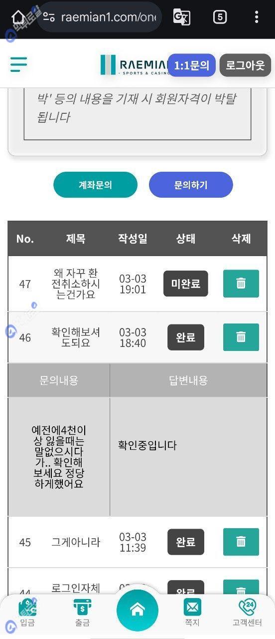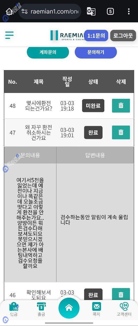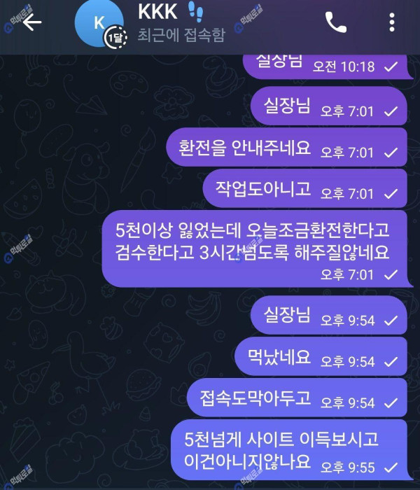 https://raemian1.com/ 텔닉네임: 레미안고객센터,KKK 텔아이디: @bigk7785 , @CS77801 관련계좌: 경남,8009802278839 피해금액: 2800 피해내용: 평소 환전 잘나오다가 2천이상되서 환전하니 검수한다하고8시간걸리다가 9시간되는 시간에 콜센터차단및 사이트 아이디 정지했습니다 처음 소개받은건 토판사 kps7474 (토판사도같이운영) 이분한테 코드받고 이용하다가 페이백 부분 정산 제대로안해줘서 고객센터에 말하니 @bigk7785 (본사실장)이라고 연락이와서 본사코드로 옮겨준다고하여 다시이용중이었는데 지금까지 이사이트에 입금만6천이넘어가는데 오늘 2천이상 금액올린다음 환전하니 먹튀했습니다 내역이든 뭐든 검수 백번천번 해봐야 아무문제 없으니 결론은 차단후 아이디 정지 하는 레미안 지금까지 받은 계좌랑 다캡쳐본있으니 계좌부터 다 신고합니다 |