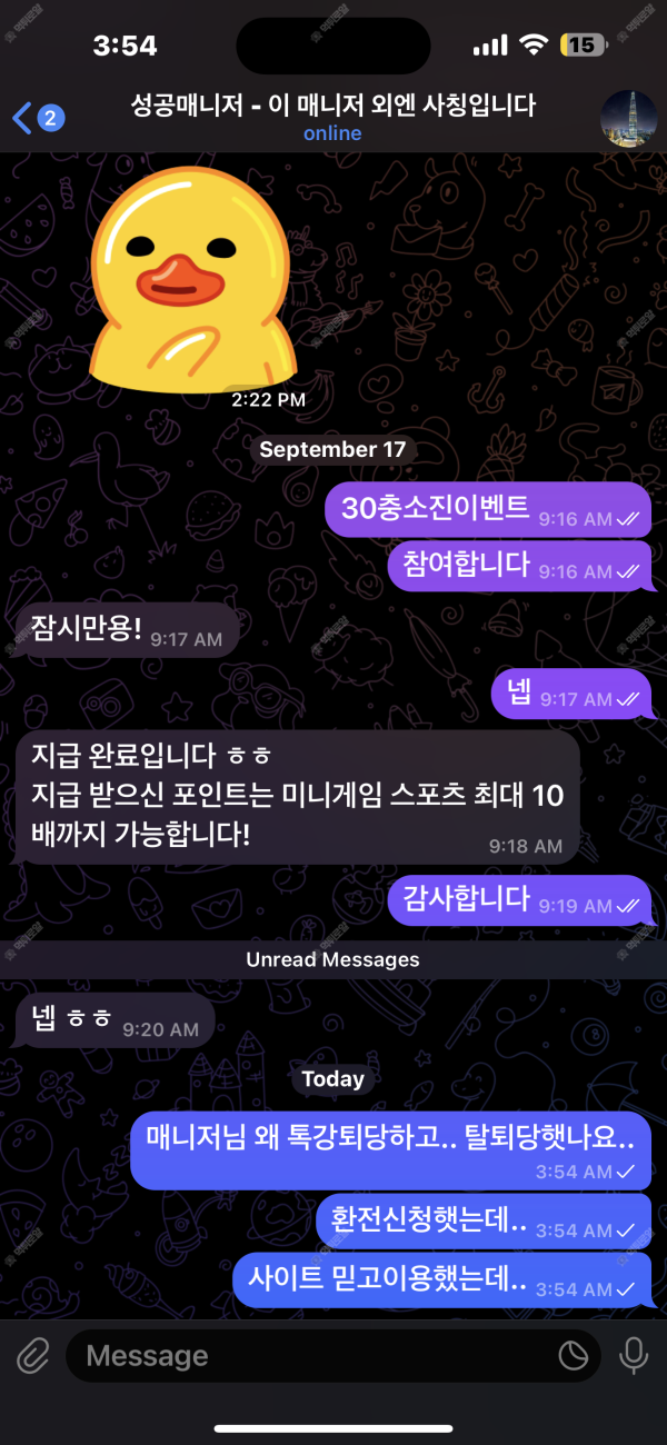 | 오래사용하고 환전잘내주길래 믿고사용했는데 요즘따더니 바로 탈퇴시키고 카톡방 추방시키네여 | |