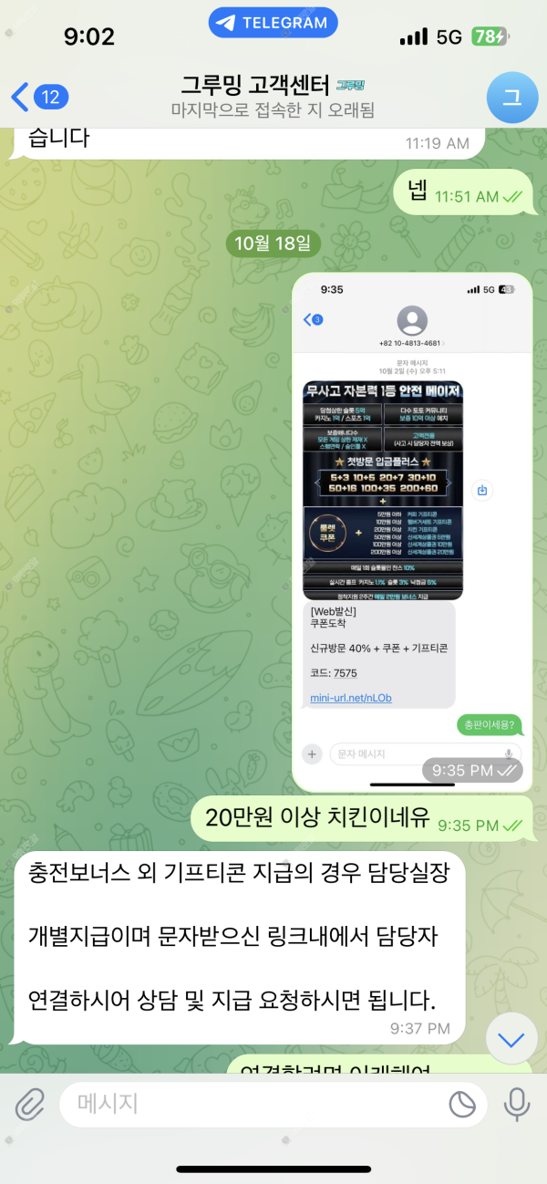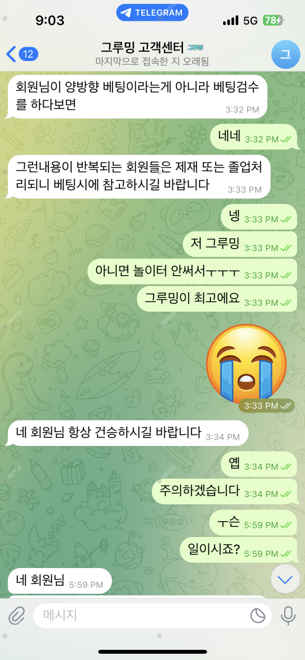 그루밍의 총판으로 부터 홍보 문자가 날라오며 꾸준히 잘이용 하던 도중 제가25일이 월급날이라서 첫 이용은 1충 으로 가상스포츠 소소하게 소액 으로만 즐겨 했습니다 그러던 25일 월급날이 되고 제가 항상 하던 수익 프로젝트가 잇었는데 친구한테 160 만원이 빚이 져있어서 20 씩 따면 갚고 하는 계획을 세웠습니다 근데!! 사이트 측에선 1만원씩 들어오던 꽁머니가 30 50 들어오는게 이상하다고 생각했는지 양방의심을 합니다 자 여기서 양방이란 300.000을 충하면 뒤에 30.000원 정도 더주는 뽀찌를 얘기 합니자 저는 롤링 채우기 싫어 매번 첫충 이벤을 안받고 롤링 100으로만 이용을 했는데요 처음엔 50 60 환전 잘해주다가 제가 305만원 정도 출금을 했을때 갑자기 주의를 주더니 통장 입출금 내역과 신분증을 달라합니다 주라는대로 줬더니 신분증 언제 찍었는지도 모르고 별에 별 핑계를 댑니다 600.000만원 뭐 줄수 있어요 어차피 딴돈이니 근데 너무 말도 안대는 핑계를 대니 여기사이트 망했으면 좋겠습니다 양방의 뜻을 알고 탈퇴를 시키세요 개슈발 ㅅㄱ 지들이 뭔 메이져라고 우빵가오 잡고 다니냐 양방은 첫충 이벤트로 뒷꽁무늬로 수익 보는게 양빵이다 개 버러지 그루밍 놈글아 |