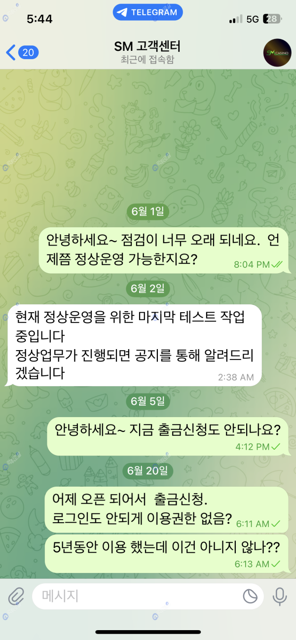 제 친구가 제가 소개한 사이트에서 먹튀를 당했습니다. 저랑 친구랑 오래이용했는데 사이트 점검한다고 갑자기 사이트 막히더니 한달정도걸려서 재오픈 했는데..기존에 게임하던 금액 1700만원 환전해주기싫었는지 계정을 없애버렸네요. 텔레그램 고객센터도 확인해준다더니 그이후로 한달가까이 연락도 안되고 먹튀를 당했습니다. 제가 소개한 사이트라 친구한테 너무 미안하네요ㅠ 돈 찾을수 있는 방법이 없는걸까요?ㅠ |